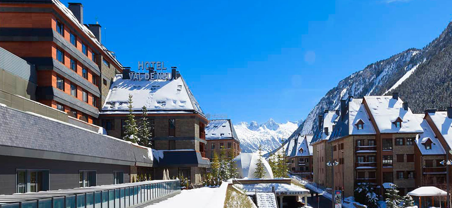 El hotel Val de Neu de 5 estrellas GL esta situado en la nueva cota 1500, una privilegiada ubicación al lado del nuevo centro comercial y de ocio y a escasos 50 metros del nuevo telecabina de la estación. Un lujoso hotel con una exquisita combinación de materiales a base de madera y pizarra para no romper la armonía del espectacular entorno en el que se encuentra.